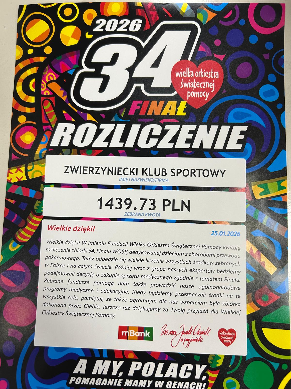 Zwierzyniecki KS melduje się na 2. miejscu w tradycyjnym turnieju piłkarskim z okazji 34. Finału WOŚP w Krakowie.